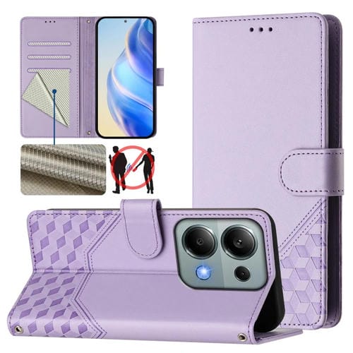 Funda de Cuero Rfid con Relieve de Panal Global para Redmi Note 13 Pro 4G (Morado Claro)