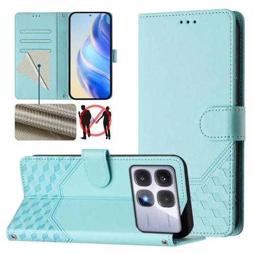 Funda de Cuero Rfid con Relieve de Panal para Redmi K70 Ultra 5G (Verde Menta)