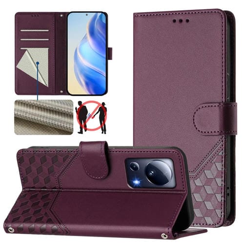 Funda de Cuero Rfid con Relieve de Panal para Xiaomi 13 Lite 5G/Civi 2 (Violeta)