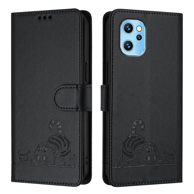 Funda de Cuero Rfid para Umidigi Power 7 Max con Relieve de Rata y Gato y Cordón (Negro)