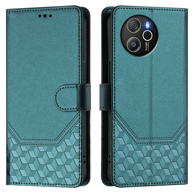 Funda de Cuero Rfid con Relieve en Panal para BlackView Shark 8 y Oscal Tiger 12 (Verde Pavo Real)