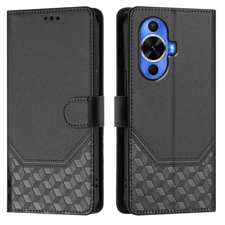 Funda de Cuero Rfid con Relieve en Panal para Huawei Nova 12S 4G (Negra)