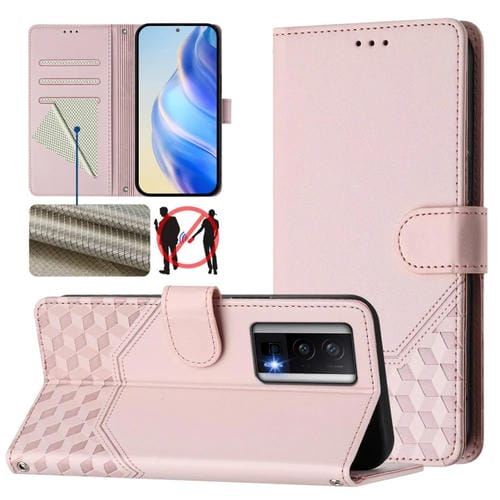 Funda de Cuero Rfid con Relieve En Panal para Redmi K60/K60 Pro (Rosa)