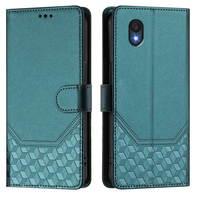 Funda de Cuero Rfid con Relieve en Panal para TCL 201 (Verde Pavo Real)