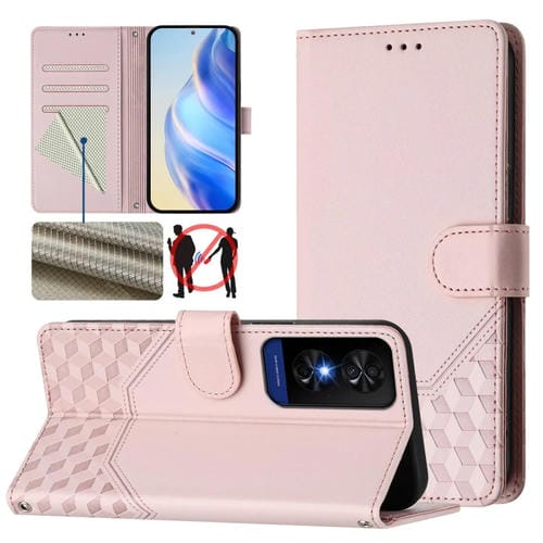 Funda de Cuero Rfid con Relieve en Panal para TCL 50 5G (Rosa)