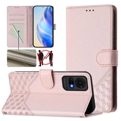 Funda de Cuero Rfid con Relieve en Panal para TCL 50 Le (Rosa)