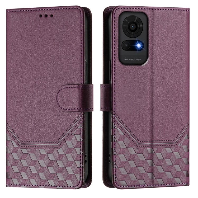 Funda de Cuero Rfid con Relieve en Panal para TCL 50 Le (Violeta)