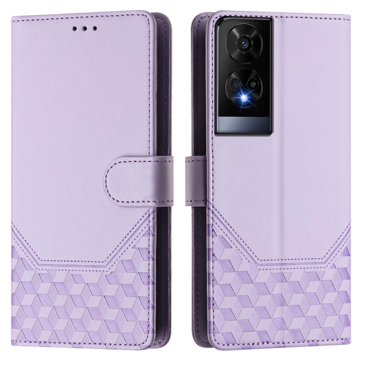 Funda de Cuero Rfid con Relieve en Panal para TCL 50 Xe (Morado Claro)