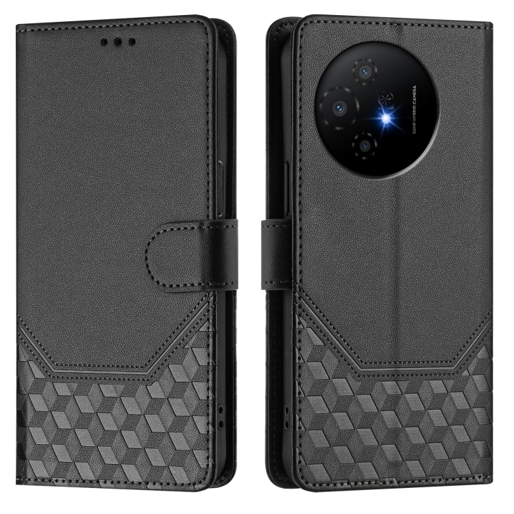 Funda de Cuero Rfid con Relieve en Panal para TCL 50 XL (Negra)
