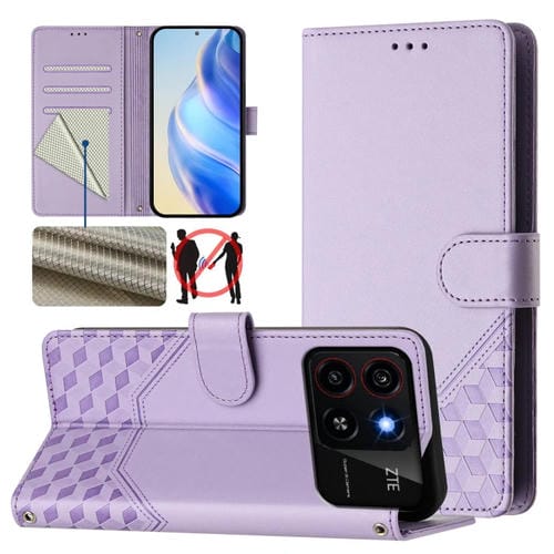 Funda de Cuero Rfid con Relieve en Panal para ZTE Blade A35/A55 (Morado Claro)