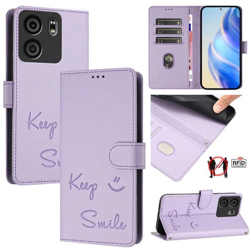 Funda de Cuero RFID con Relieve Smile para Teléfono Blu View 5 (Morado Claro)