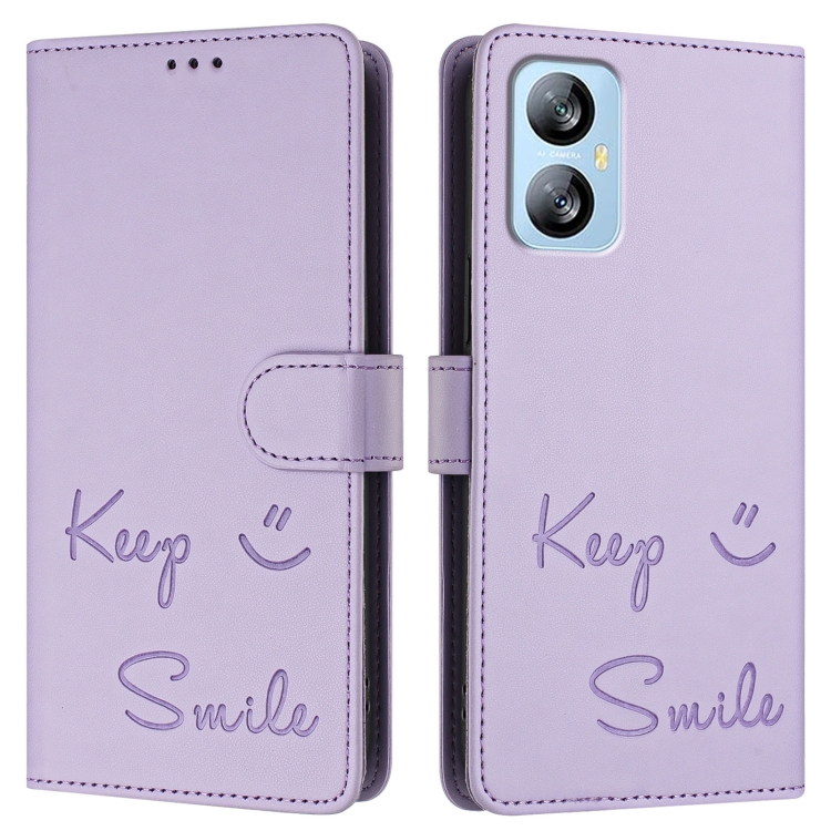 Funda de Cuero Rfid con Relieve Sonriente para BlackView A52 (Morado Claro)
