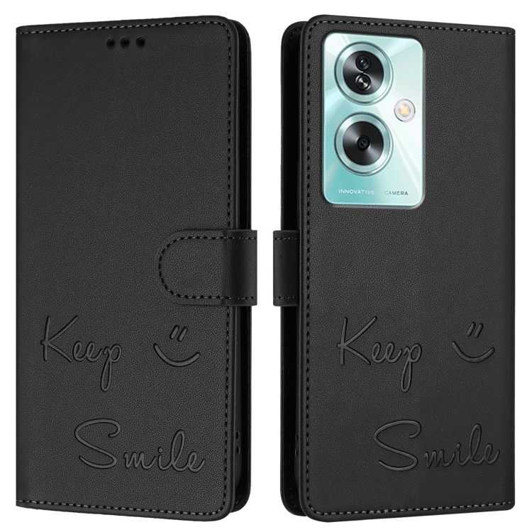Funda de Cuero Rfid con Relieve Sonriente para OnePlus Nord N30 Se (Negra)
