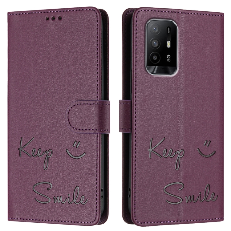 Funda de Cuero Rfid con Relieve Sonriente para Oppo A74 4G/F19/F19S (Violeta)
