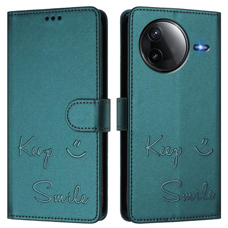 Funda de Cuero Rfid con Relieve Sonriente para Redmi K80 5G/K80 Pro 5G (Verde Pavo Real)