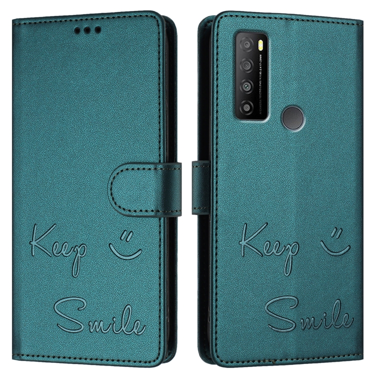 Funda de Cuero Rfid para TCL 30 Xl T701Dl con Relieve Sonriente (Verde Pavo Real)