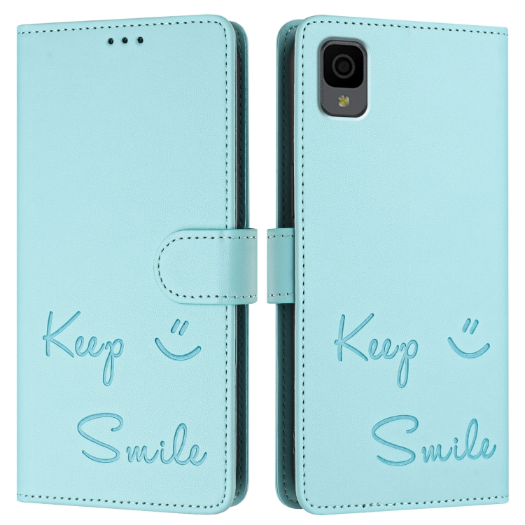 Funda de Cuero Rfid con Relieve Sonriente para TCL 30Z T602Dl (Verde Menta)