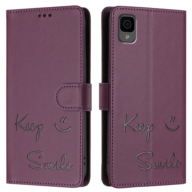 Funda de Cuero Rfid para TCL 30Z T602Dl con Relieve Sonriente (Violeta)