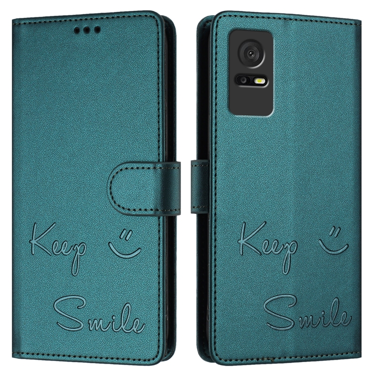 Funda de Cuero Rfid con Relieve Sonriente para TCL 405/406/408 (Verde Pavo Real)