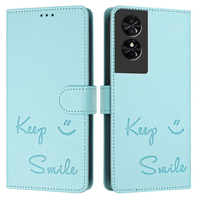 Funda de Cuero Rfid con Relieve Sonriente para TCL 50 Se (Verde Menta)