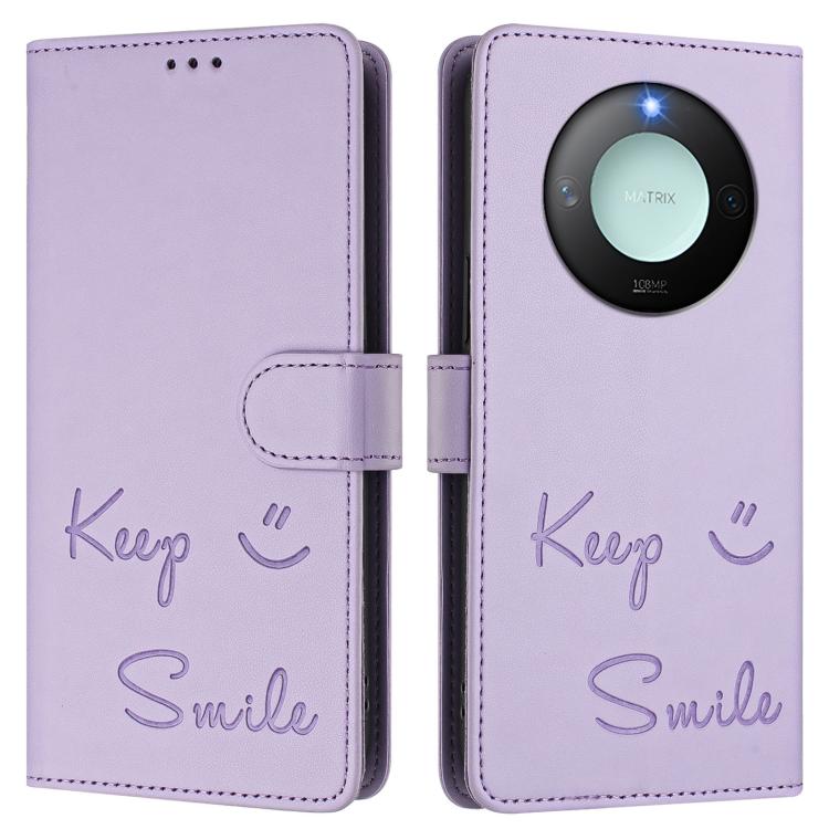 Funda de Cuero Rfid para Teléfono Honor X9C Smart 5G con Relieve Sonriente (Morado Claro)