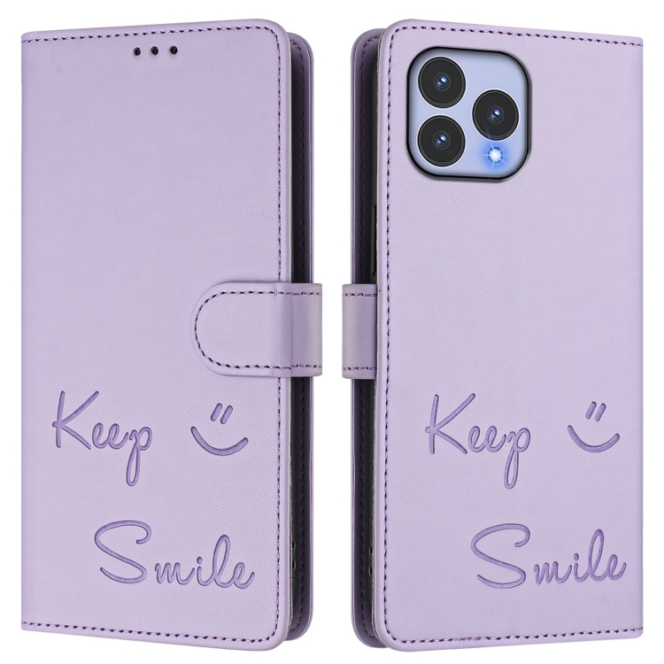 Funda de Cuero Rfid con Relieve Sonriente para Teléfono Wiko T60 y Cubot P80 (Morado Claro)