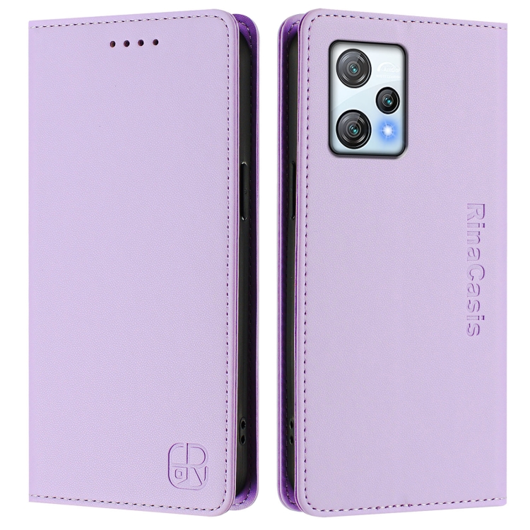 Funda de Cuero Rfid con Succión Magnética y Doble Pliegue para BlackView A53 Rc01 (Morado Claro)