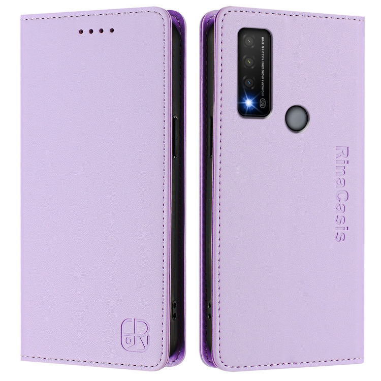 Funda de Cuero Rfid con Succión Magnética y Doble Pliegue para TCL 20 R 5G Rc01 (Morado Claro)