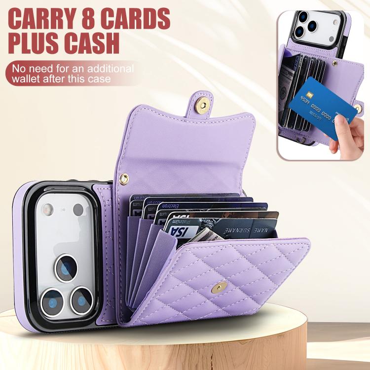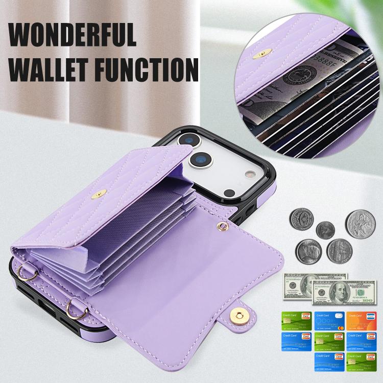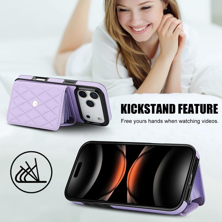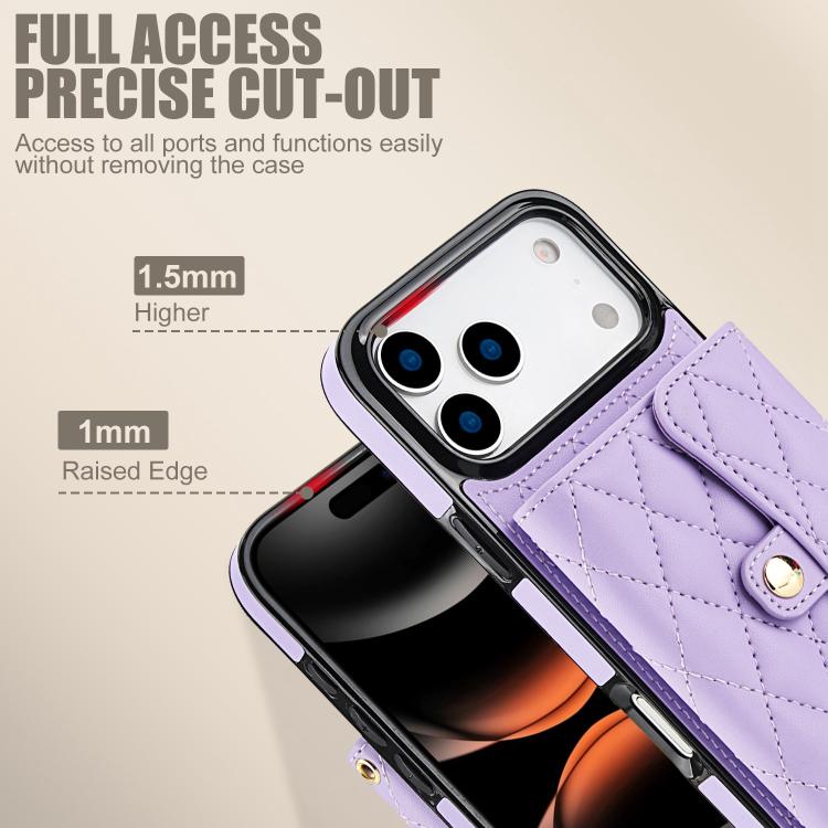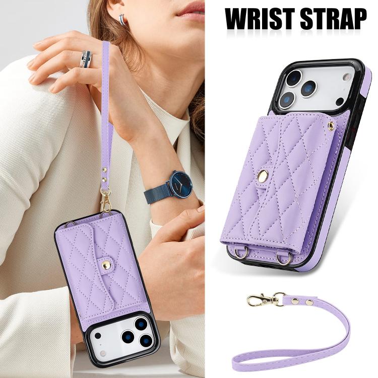 Funda de cuero tipo cartera horizontal con diseño rómbico cruzado para iPhone 17 Pro Max (morado)