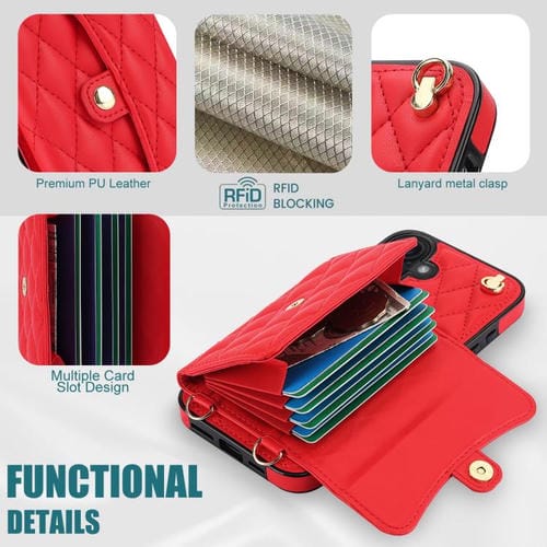 Funda de cuero tipo cartera horizontal con diseño rómbico cruzado para iPhone 17 (roja)