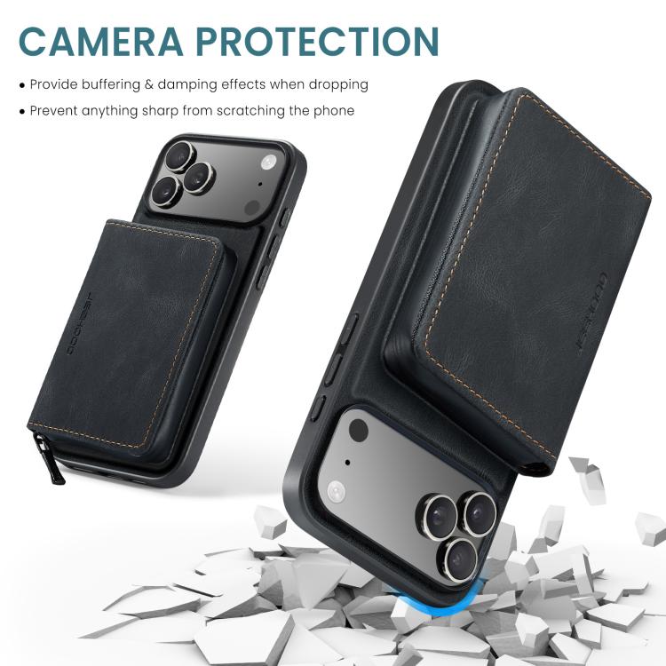 Funda de piel con cremallera magnética horizontal tipo libro JEEHOOD J02 para iPhone 17 Pro (negra)