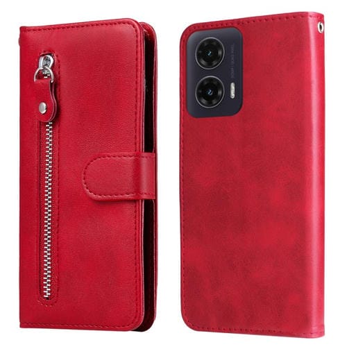 Funda de Piel con Cremallera y Textura de Becerro para Motorola Moto G35 (Rojo)