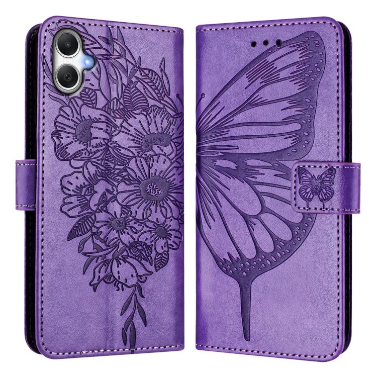 Funda de piel con diseño de mariposa en relieve para Samsung Galaxy A07 4G (morada)