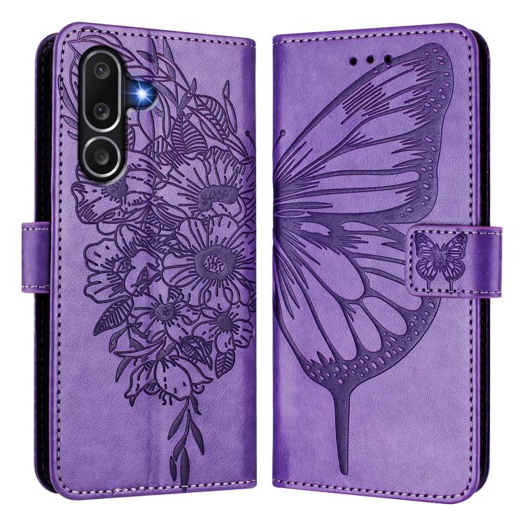 Funda de piel con diseño de mariposa en relieve para Samsung Galaxy M56 5G (morada)