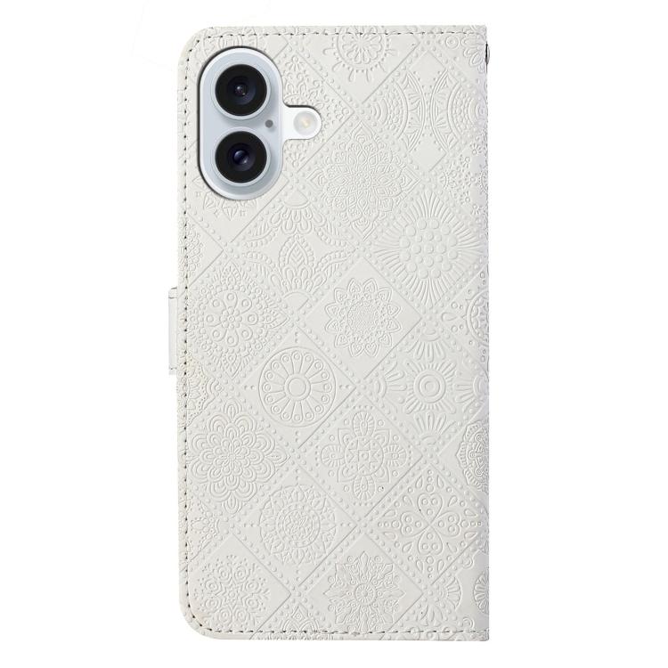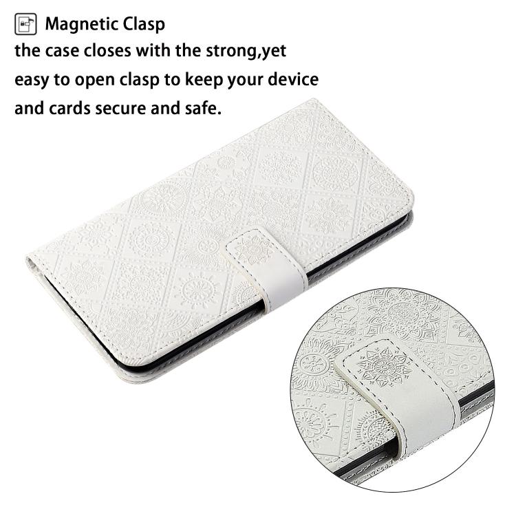 Funda de piel con estampado étnico en relieve para iPhone 17 (blanca)