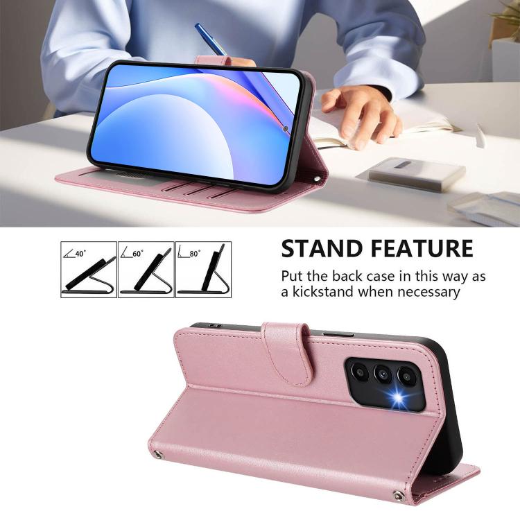 Funda de piel con estampado RFID y cordón para Samsung Galaxy A13 5G/4G (rosa)