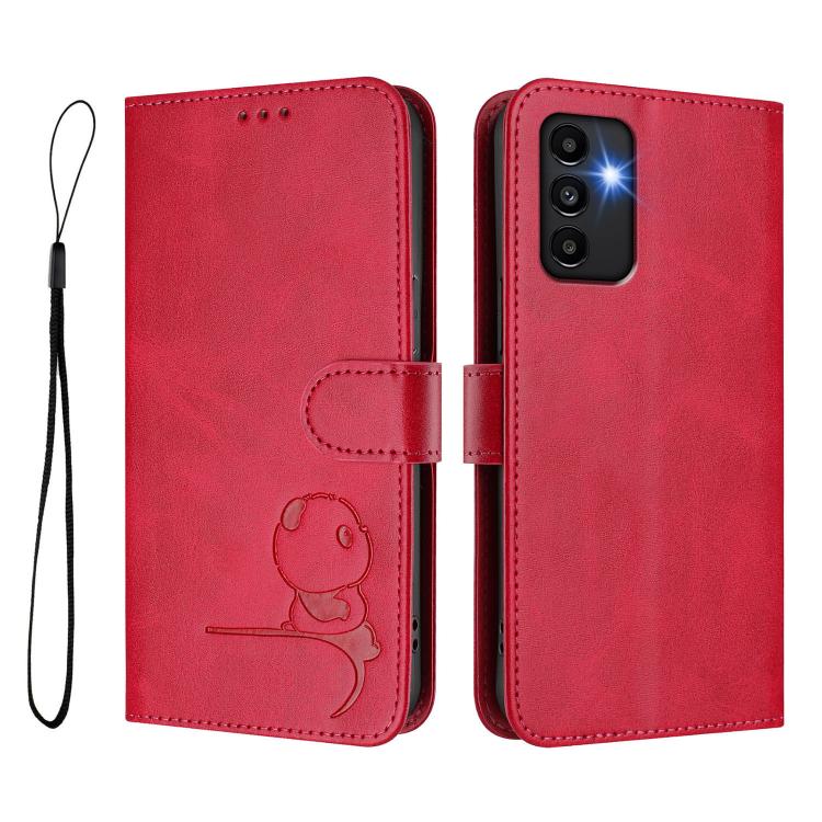 Funda de piel con estampado RFID y cordón para Samsung Galaxy A13 5G/4G (rosa y rojo)