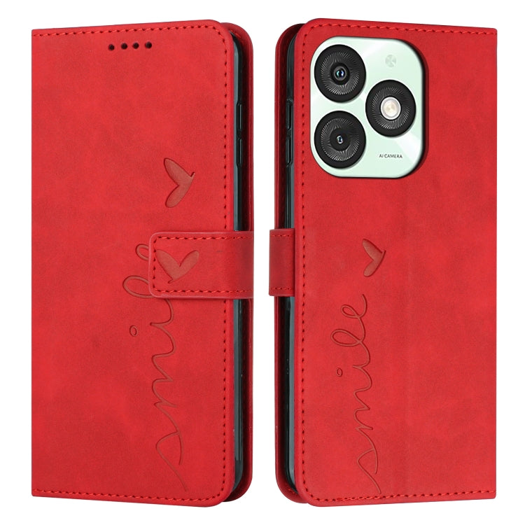 Funda de Piel con Relieve de Corazón y Cordón Largo para Teléfono Itel A50 (Rojo)