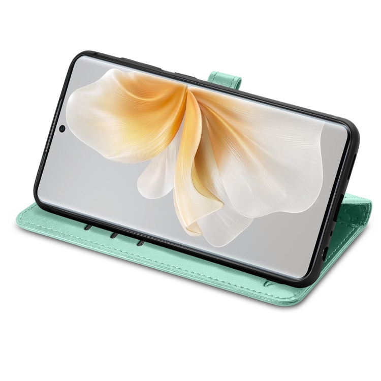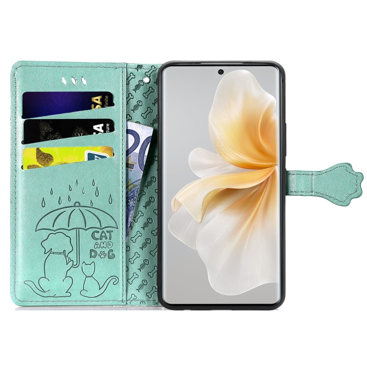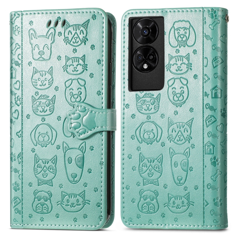 Funda de Piel con Relieve Gato y Perro para Teléfono TCL 50 5G (Verde)