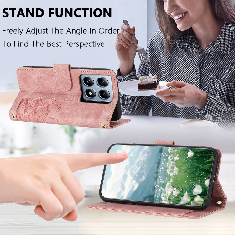 Funda De Piel Con Relieve De Tulipanes Para Xiaomi 14T Con Cordón (Rosa)