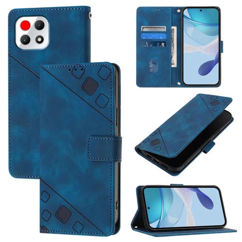 Funda de Piel con Relieve para Teléfono T-Mobile Revvl 7 5G (Azul)