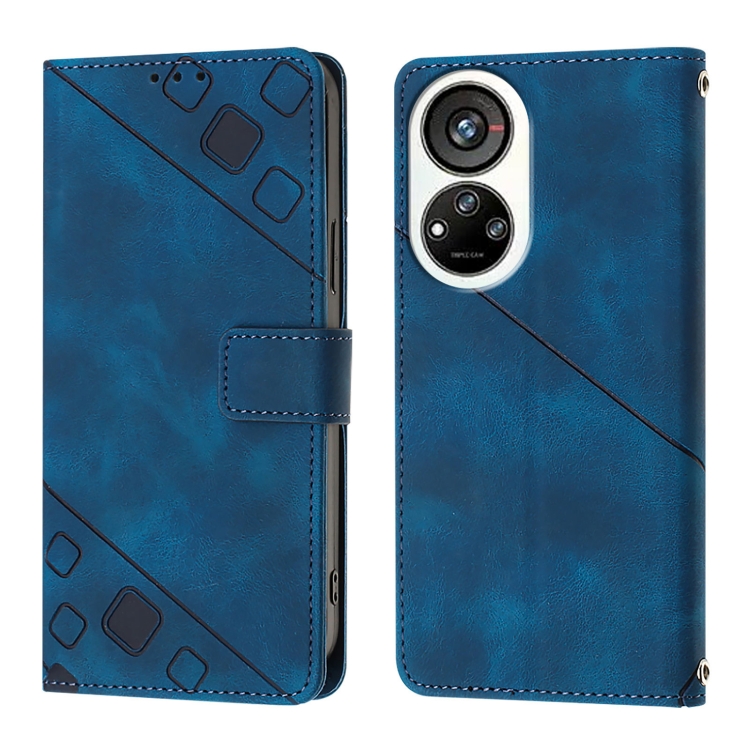 Funda de Piel con Relieve para Teléfono ZTE Blade V40S (Azul)