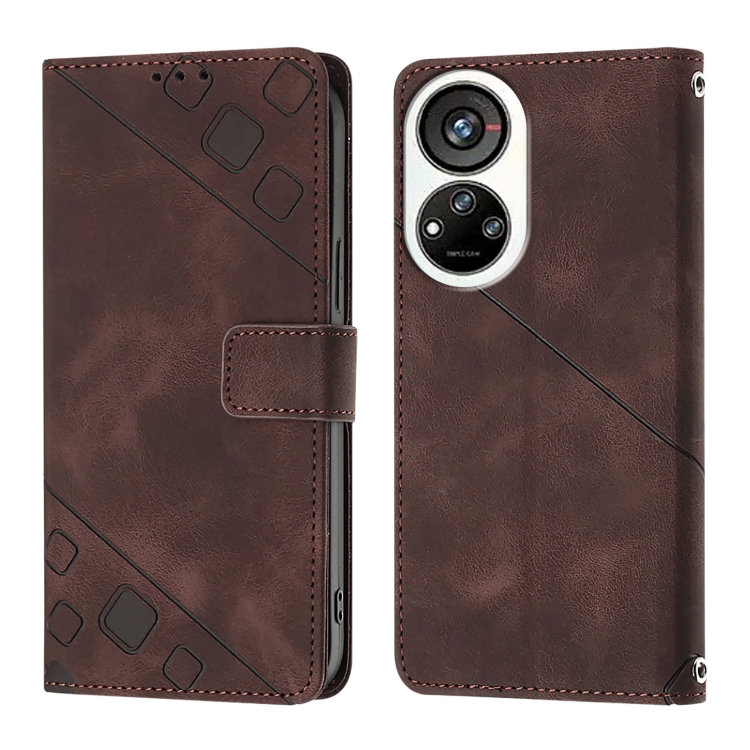 Funda de Piel con Relieve para Teléfono ZTE Blade V40S (Marrón)