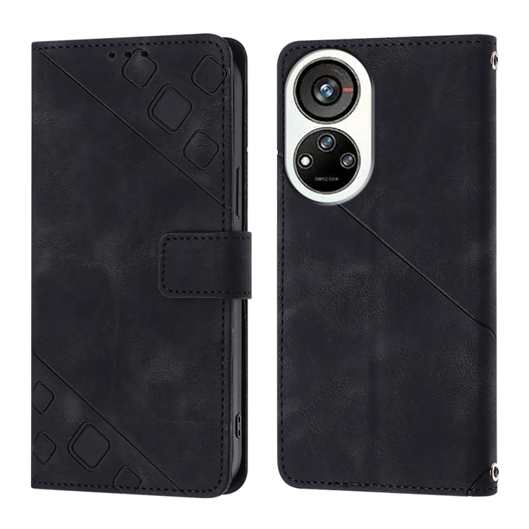 Funda de Piel con Relieve para Teléfono ZTE Blade V40S (Negra)