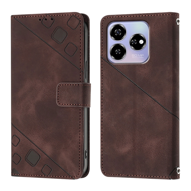 Funda de Piel con Relieve para ZTE Blade V60 y Axon 60 4G (Marrón)