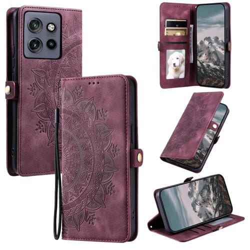 Funda de Piel con Relieve Totem para Motorola Edge 50 Neo (Rojo Vino)