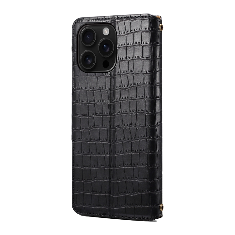 Funda de Piel Denior con Textura de Cocodrilo y Borde Aceitado para iPhone 16 Pro Max (Negra)