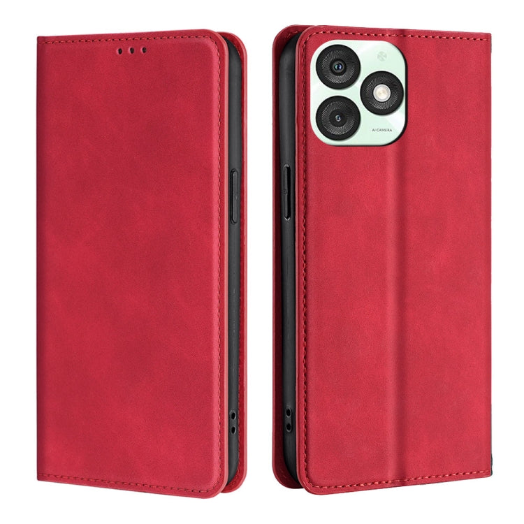 Funda de Piel Magnética para Teléfono Itel A50 4G (Roja) con Tacto Piel