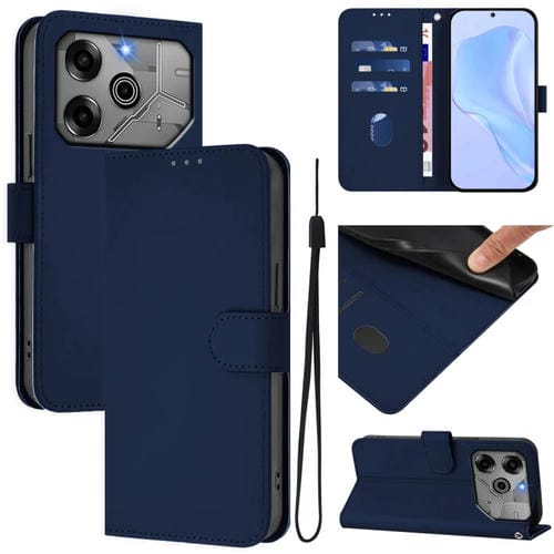 Funda de Cuero con Textura de Piel y Cordón para Tecno Pova 6 5G y 6 Pro 5G (Azul Marino)