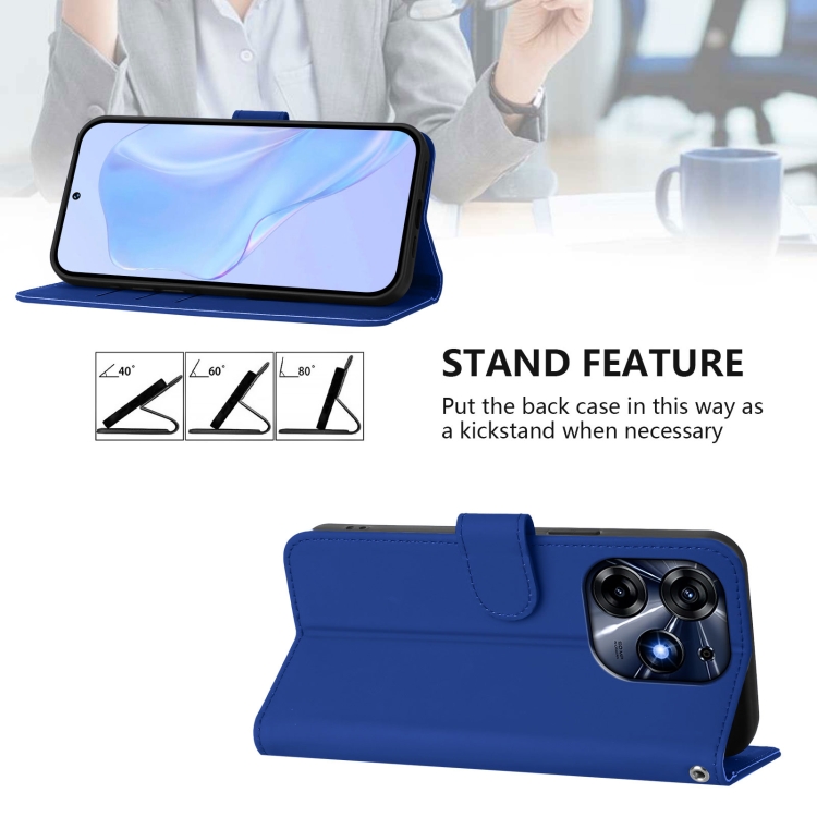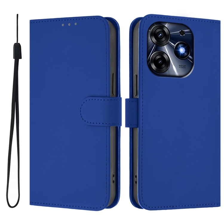 Funda de Cuero con Textura de Piel y Cordón para Tecno Spark 10 Pro 4G (Azul Oscuro)